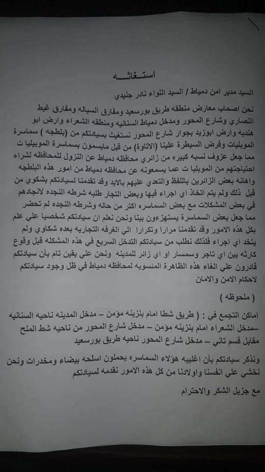 شكوى واستغاثة اصحاب المعارض بدمياط من بلطجة السماسرة