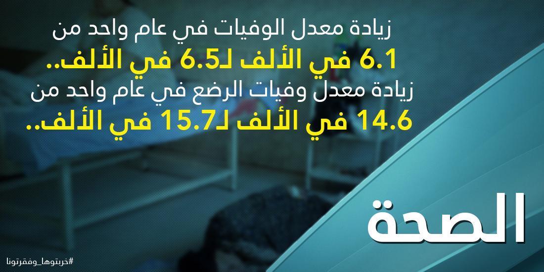 زيادة معدل وفيات الرضع في عام واحد من 14.6 في الألف ل15.7 في الألف..