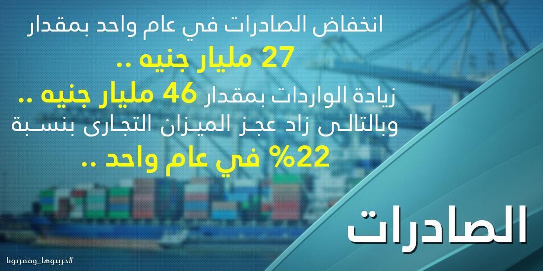 وبالتالى زاد عجز الميزان التجارى بنسبة 22% في عام واحد..