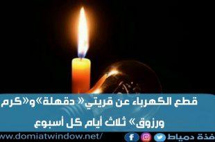 قال مصدر بشركة الكهرباء انه سيتم فصل التيار الكهربائي عن خط قرية« دقهلة» التابعة للزرقا وقرية «كرم ورزوق» ، التابعة لفارسكور ، وأضاف المصدر انه من المقرر قطع الكهرباء أيام السبت، والاثنين ، والأربعاء، من كل أسبوع حتى نهاية شهر فبراير ، وذلك من الساعة «9» صباحاً حتي «12» ظهراً.