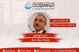 أكمل القراءة »قتل بالموت البطيئ ( استشهاد الدكتور عمرو أبوخليل -استشاري الطب النفسي ) في محبسه