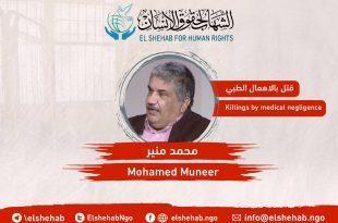 ورد إلى مركز الشهاب خبر وفاة الصحفي/ محمود منير – يسكن بالشيخ زايد، وذلك جراء فيروس كورونا الذي أصابه أثناء احتجازه قبل أن تفرج عنه السلطات المصرية، وقد نشر مركز الشهاب خبر القبض التعسفي عليه.ومركز الشهاب لحقوق الإنسان يحمل وزارة الداخلية مسؤولية الوفاة، ويطالب المركز النيابة العامة بالتحقيق في وفاة …