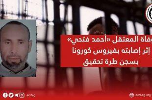 لفظ المواطن «أحمد فتحي» الشهير بـ”أحمد عامر”، 51 عاماً، أنفاسه الأخيرة، اليوم السبت 13 يونيو، في محبسه بسجن طره تحقيق، إثر إصابته بفيروس كورونا المستجد «كوفيد-19»، والمعتقل على ذمة القضية 1175 لسنة 2018. من جانبها تطالب التنسيقية المصرية للحقوق والحريات، بعمل مسحات شاملة لجميع المعتقلين في السجون، والإفراج عن كل …
