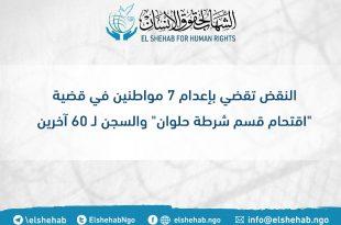قضت محكمة النقض بتأييد حكم الإعدام على سبعة مواطنين، هم:– عبد المنعم محروس جبلاني البواب.– المحمدي محمد عبد المقصود المقصود الغنام.– على عبد التواب حسين سليمات.– حسانين رشاد الجبري حسانين.– محمود مصطفى على محمد.– محمود حمدي أحمد خميس.– محمد صادق عبده سليمان. وقضت المحكمة بالسجن المؤبد لخمسين مواطنا، والسجن 7 …