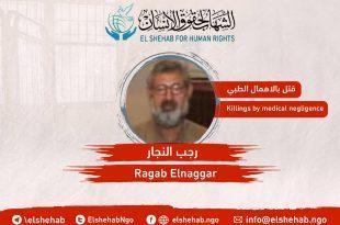 ورد لمركز الشهاب خبر وفاة المواطن/ رجب النجار- قرية الكفر القديم مركز بلبيس محافظة الشرقية، وذلك بقسم شرطة بلبيس اليوم الخميس 7 مايو 2020 نتيجة للإهمال الطبي بمحبسه.والمواطن قبض عليه في ديسمبر 2019 وهو مريض، وفي محبسه عانى مؤخرا من ارتفاع درجة الحرارة، ويشك أهله باحتمال وفاته بكورونا، خاصة مع …
