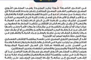 #بيان هام: في الذكرى التاسعة لثورة يناير المجيدة يهيب المجلس الثوري المصري بجماهير الشعب المصري المناضل رفض وعدم الإستجابة لأي نداء ينبعث من مصادر تدعو إلى تثبيط الهمم وكسر الإرادة والتعايش مع الأمر الواقع الأليم الذي أوصل بلادنا إليه كيان السيسي الخائن العميل، فكيف يرضى شعبنا الأبيّ الذي قام بثورته …