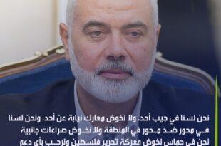 تصريحات مهمة في توقيت دقيق لرئيس المكتب السياسي لـ #حركة_حماس “إسماعيل هنية” وضَّح فيها سياسة الحركة في التعامل مع الآخرين