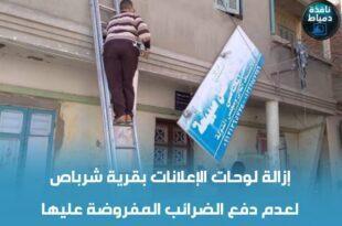 وكأن كل الامور والخدمات على ما يرام , ولا ينقصنا إلا دفع ضرائب اللافتات واليفط حتى بالقرى ,حتى القرى لم تسلم .. بحجة عدم دفع الضرائب المفروضة على اللوحات ، قامت الوحدة المحلية لقرية «شرباص» التابعة لمركز فارسكور ، بإزالة لوحات المحلات والعيادات و المكاتب . ألم يطرح أحد السوءال …