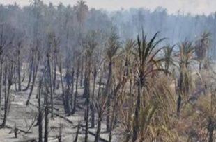 اندلع حريق بقرية الراشدة بمحافظة الوادي الجديد أسفر عن تدمير مائة فدان من النخيل وإصابة نحو 40 شخصا. وقالت مصادر صحفية إن الحريق امتد لمساحة شاسعة من الأراضي نتيجة تأخر قوات الحماية المدنية في الوصول إلى القرية واعتماد الأهالي على الطرق البدائية في إخماده ونشر ناشطون على مواقع التواصل الاجتماعي …