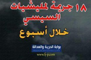 شهدت الفترة من 8 إلى 14 سبتمبر الجاري، ارتكاب مليشيات الانقلاب 18 جريمة لحقوق الإنسان، تنوعت ما بين اعتقال وإخفاء قسري وإهمال طبي وقتل خارج القانون. وتأتي تلك الانتهاكات استمرارًا لنهج الانقلاب في قهر المصريين وعدم احترام حقوق الإنسان، وهي سياسة يعرفها العسكر جيدًا منذ حركة الضباط في يوليو ١٩٥٢.