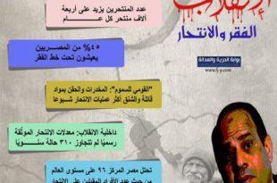 يعيش المصريون أوضاعًا معيشية صعبة جراء إصلاحات اقتصادية مزعومة تجريها حكومة الانقلاب، ووفق إحصائية للجهاز المركزي للتعبئة والإحصاء، أكد في تقارير له أن نسبة الفقر في مصر التي تخطى عدد سكانها 100 مليون نسمة، بلغت 27,7% للفئة العمرية من 15 عاما فما فوق، و35,4% للفئة العمرية من 15 إلى 24 …