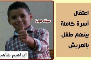 #شمال_سيناء #إعتقال_أسرة_كاملة_بينهم_طفل_بالعريش قامت قوات الأمن الخميس الماضي 26/7/2018 باعتقال الطفل/ ابراهيم محمد ابراهيم شاهين البالغ من العمر 10 سنوات من منزله بمدينة #العريش هو ووالده/محمد ابراهيم شاهين ووالدته كما قامت باعتقال عم الطفل ويدعي/ محمود ابراهيم شاهين وكذلك زوجته دون اي مبرر او سبب واقتادوهم إلي قسم ثان بالعريش تاركين …