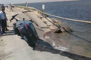 بالصور : انهيار في طريق القناة نتيجة اصطدام مركب بالطريق.. تخيلوا ؟!