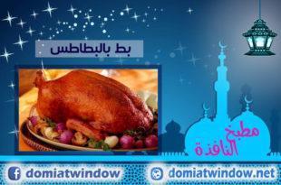 صنية بط بالبطاطس المكوّنات بطه 5 حبات من البطاطس 5 حبات من الطماطم 3 حبات بصل ملح وفلفل اسود حسب الرغبه طريقة التحضير تسلق البط كويس وبعدين نحمره ونسلق البطاطس بس شوي نطرب الطماطم في الخلاط الكهربائي نقطع البصل ونقلب على النار حتى يبقي لوان احمر. بعدين نضيف صلصه الطماطم نجيب صينيه …