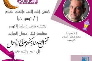 أكمل القراءة »الاستاذ تيسير دبا يهنئ شعب دمياط الكريم بمناسبة شهر رمضان المبارك