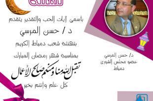 #نافذة_دمياط تهنئة خاصة ودافئة من حبيب الدمايطة الدكتور على الداي ابن دمياط وعضو مجلس الشعب يهنيء فيها كل دمياط بقدوم شهر القرآن والعزة والنصر سائلاً الله أن يعيد مصر حرة من كل طغيان وظلم كل عام وأنتم بخير