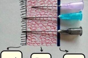 (السرنجة_المووڤ) دي مش إسمها سرنجة بدون ألم أو سرنجة حريمي .. دي سرنجة أطفال ومصممة لحقن الأطفال فقط.ومن الأخطاء الشائعة جدا استخدامها للكباروالشكل اللي قدامنا ده تبسيط بيوضح العضلة عند الشخص البالغ.الهدف من السرنجة أنها توصل الدواء لمنطقة العضلات اللي عـ الشمال خالص دي …والسرنجة في طريقها بقي بتمر بطبقة …