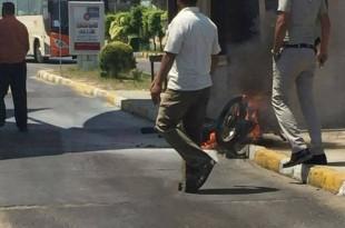 شاب دمياطى يشعل النار فى درجاته البخاريه بعد منعه وزوجته من دخول راس البر بعد منع شاب وزوجته علي بوابه راس البر من الدخول منذ قليل الشاب يشعل النيران في الموتوسيكل غاضبا وهل زوجته ليست شفيعه له للاستجمام برأس البر الغلبان في البلد دي مالوش حقوق يبيعون شطا لمستثمر سعودى …