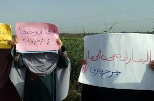 دمياط | #البصارطة_تستغيث سلسلة بشرية بقرية أم الرضا نظمت نساء ضد الانقلاب بكفر سعد و كفر البطيخ سلسلة بشرية على طريق دمياط – جمصة الزراعي رفعت المشاركات لافتات تناصر قرية #البصارطة و تندد بهدم بيوت الشرفاء فيها و حصارها للشهر الثاني كما رفعن لافتات #قوتنا_في_وحدتنا و الداخلية بلطجية و #توحدوا_تنتصروا …
