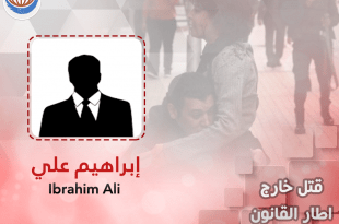 #مصر | #سيناء #قتل_خارج_إطار_القانون ورد للمنظمة، تعرض المواطن المصري/ إبراهيم.ح.علي.أ.، لعملية قتل خارج إطار القانون، على يد مسلحون. وبحسب شهود عيان، فقد تم قتله بالقرب من مستشفى الشيخ زويد، وقاموا بإشعال النار في جثمانه، وفِي سيارته، بدعوى عمله مع الجيش. وتُدين المنظمة عمليات القتل خارج إطار القانون، على يد التنظيمات …