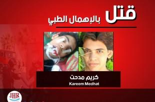أكمل القراءة »مقتل الشاب”كريم مدحت” منذ قليل نتيجة الإهمال الطبي بسجن برج العرب