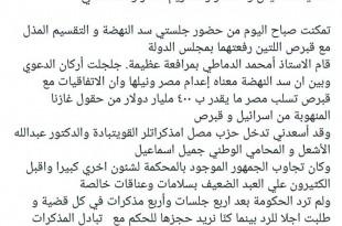 قضايا التعطيش و الافقار و التقزيم لمصر وطننا الغالي تمكنت صباح اليوم من حضور جلستي سد النهضة و التقسيم المذل مع قبرص اللتين رفعتهما بمجلس الدولة قام الاستاذ أمحمد الدماطي بمرافعة عظيمة. جلجلت أركان الدعوي وبين ان سد النهضة معناه إعدام مصر ونيلها وان الاتفاقيات مع قبرص تسلب مصر ما …