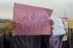 دمياط | سلسلة بشرية لنساء ضد الانقلاب بكفر سعد و كفر البطيخ لم يمنعهن الأجواء المطيرة و أحوال الطقس السيئة من أن يخرجن ليعلن ” أوقفوا الخائن .. حكم العسكر خراب ” زوجات و أمهات المعتقلين و الشهداء ينظمن سلسلة بشرية أمام قرية أم الرضا على طريق دمياط – جمصة …