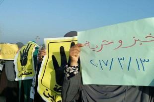 حرائر دمياط يواصلن مظاهرات “خبز وحرية” نظمت حرائر دمياط صباح اليوم الاثنين وقفة وسلسلة بشرية، استمرارا لمظاهرات “خبز وحرية”، قى يومها الرابع ضمن موجة “ارحل” تواصلا لنضالهن الثورى المناهض للانقلاب العسكرى وجرائمه وعبث السيسى قائد الانقلاب وحكوماته بمقدرات البلاد. واستنكرت المشاركات فى المظاهرة التى امتدت على الطريق الزراعي الواصل …