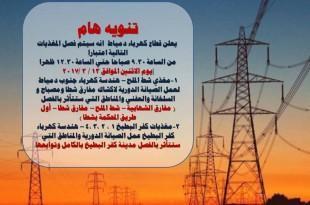 #نافذة_دمياط كهرباء دمياط تعلن عن فصل التيار الكهربائي بعد غد الإثنين عن بعض المناطق بالمحافظة نظراً لأعمال الصيانة