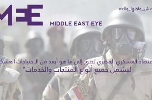 تقرير لموقع “ميدل إيست آي” البريطاني : “الاقتصاد العسكري المصري تطور إلى ما هو أبعد من الاحتياجات العسكرية ليشمل جميع أنواع المنتجات والخدمات”. # يسيطر الجيش بموجب القانون على أكثر من 80% من أراضي الدولة، كما أن القوات المسلحة تملك حق الانتفاع المتعدد بالمجندين إجبارياً، عبر توزيعهم على مشاريع …