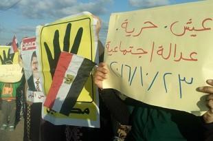 نظمت حركة نساء ضد الإنقلاب بكفر سعد سلسلة بشرية صباح اليوم على طريق دمياط_جمصة الزراعي أمام قرية الصمود “ام الرضا”. رفعت المشاركات الأعلام المصرية وعلامة رابعة رمز الصمود ،كما رفعوا لافتات تشكو من غلاء الأسعار وتعارض القتل والاغتيالات التي تقوم بها ميليشيات الإنقلاب العسكري.