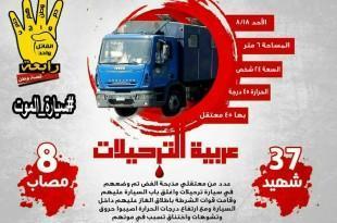 الخنق والحرق هكذا وصف مركز الشهاب لحقوق الإنسان طريق قتل 36 من مناهضى الانقلاب العسكرى فى سيارت الترحيلات التى ارتكبتها سلطات الانقلاب بتاريخ 18 أغسطس 2013، ولا تزال العداله غائبة عن القصاص لدماء شهداء المذبحة المعروفة إعلاميا بسيارة الترحيلات. ونشر مركز الشهاب لحقوق الإنسان، اليوم الخميس، فيديو يوثق الجريمة عبر …