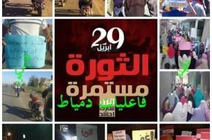 #دمياط : * مسيرة حاشدة في البصارطة تطالب بإسقاط الانقلاب العسكري رفع المتظاهرون صور الشهداء والمعتقلين من أبناء القرية ومرددين هتافات بالحرية للبنات ولكل الشرفاء ومؤكدين على استمرار حراكهم ضمن فاعليات أسبوع اغضب . * انطلقت مسيرة لثوار دقهلة للمطالبة برحيل النظام الذي قتل النفس وباع الأرض رافع المشاركون أعلام …