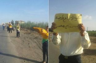 سلسلة بشرية على طريق ترعة السلام لثوار قرى فارسكور عصر 25 ابريل