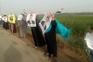 نظمت حرائر قرية أم الرضا صباح اليوم سلسلة بشرية على طريق دمياط – جمصة الزراعي رفعت المشاركات لافتات تنديداً بتطاول الزند على مقام نبينا الكريم –صلى الله عليه و سلم– كما رفعن لافتتات تنديدا بحملات الاعتقال و الاخفاء القسري بحق الثوار و استمرار حبس بنات دمياط و رفعن لافتات …