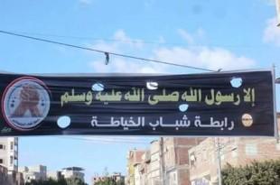 قام شباب قرية الخياطة بتعليق لافتات باسم “ رابطة شباب قرية الخياطة ” تحمل عبارة ” إلا رسول الله -صلى الله عليه و سلم -“ تنديدا بتجرأ الكلب الزند على نبينا الكريم