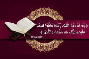 أكمل القراءة »آيه ومعني :﴿وَلَوْ أَنَّ أَهْلَ الْقُرَى آمَنُوا وَاتَّقَوْا لَفَتَحْنَا عَلَيْهِمْ بَرَكَاتٍ مِنْ السَّمَاءِ وَالْأَرْضِ وَلَكِنْ كَذَّبُوا فَأَخَذْنَاهُمْ بِمَا كَانُوا يَكْسِبُونَ﴾ [الأعراف٩٦].