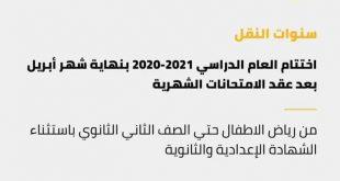 عاجل وزارة التربية والتعليم : نهاية شهر أبريل هي نهايه العام الدراسي للطلاب من رياض الأطفال حتي الثاني الثانوي.