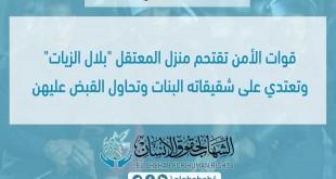 ميليشيات الإنقلاب العسكري تقتحم بيت المعتقل بلال الزيات وتعتدي بالضرب على شقيقاته اقتحمت ميليشيات الانقلاب العسكري اليوم السبت منزل الطالب بلال الزيات والذي سبق واختطفته واخفته قسريا حتى الآن ،وقام أحد الضباط بضرب شقيقتيه على وجهيهما . و قام جنود من المرافقين له باقتحام الغرفة التي فروا إليها واعتدوا عليهن …
