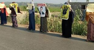 ألبوم مصور..سلسلة بشرية لحرائر كفر سعد على طريق دمياط_جمصة
